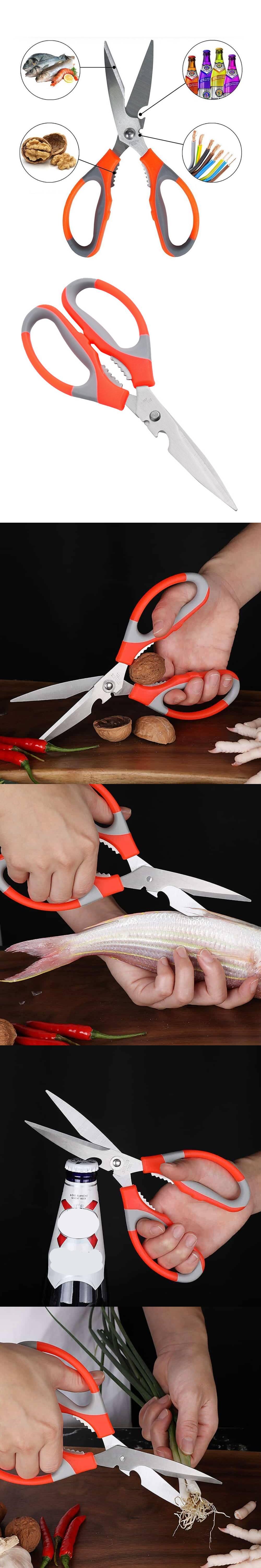 Ergonomik Kollar. Makas Tasarımında Fındık Kırıcı ve Şişe Açacağı, Çok İşlevli Ayırt Edilebilir Makaslar, mutfak alet çantanızda bulundurmak için ideal bir araçtır. Bu makaslar, balıkların kemiklerinin ayıklanması ve pullarının ayıklanması ve sebzelerin soyulması gibi çok sayıda görevi kolaylıkla yerine getirebilir. Merkezde çelik dişler bulunan bu makasları, deniz ürünleri kabuklarının yanı sıra sert fındıkları kırmak için kullanabilirsiniz. Keskin paslanmaz çelik bıçaklara sahip, Uzun Ömürlü Kullanım için Yüksek Kaliteli Malzemelerden Üretilmiştir