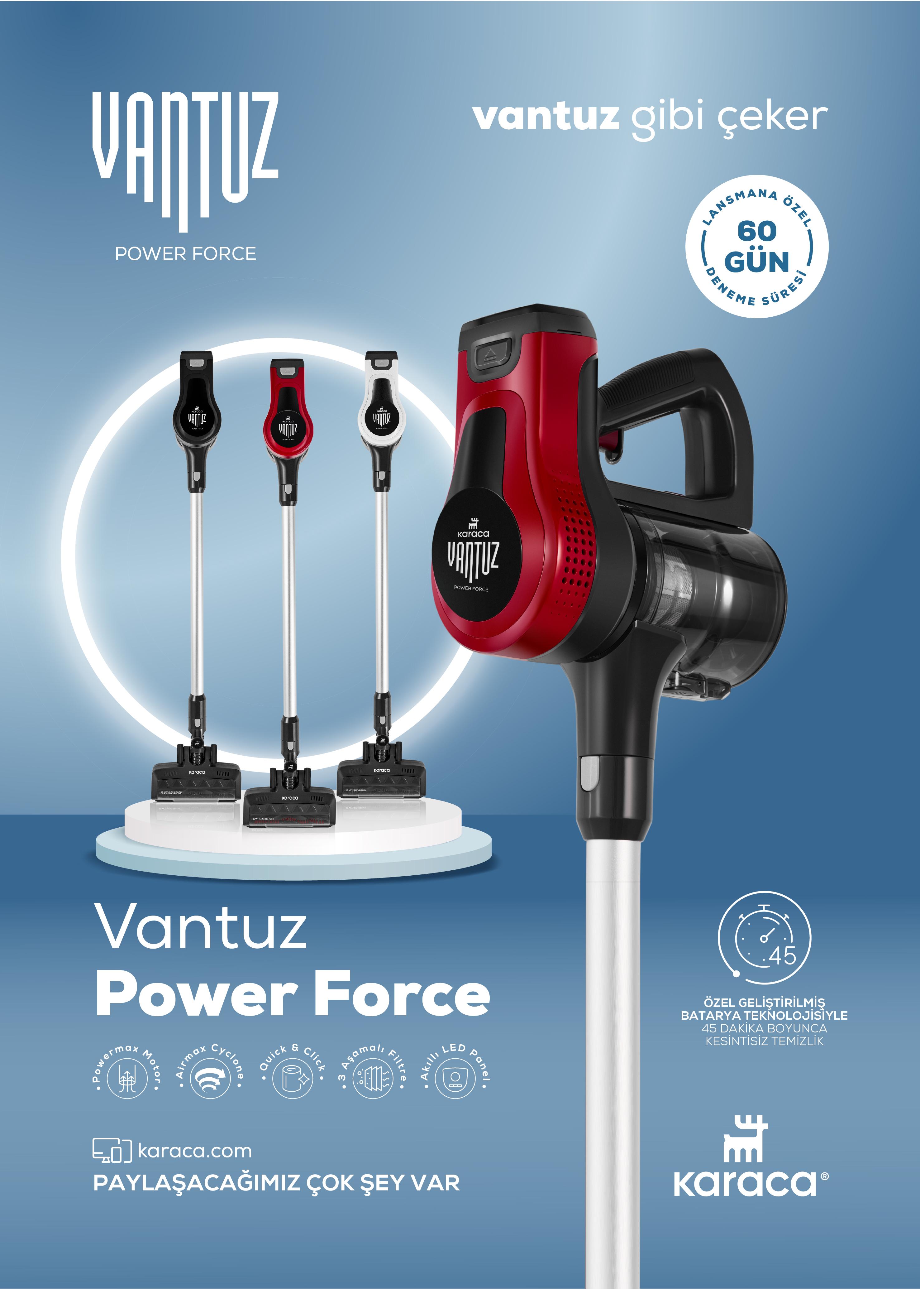 • Vantuz Power Force, geliştirilmiş Powermax motor teknolojisi sayesinde tüm zeminlerde yüksek çekim gücü ile kusursuz temizlik sağlar.