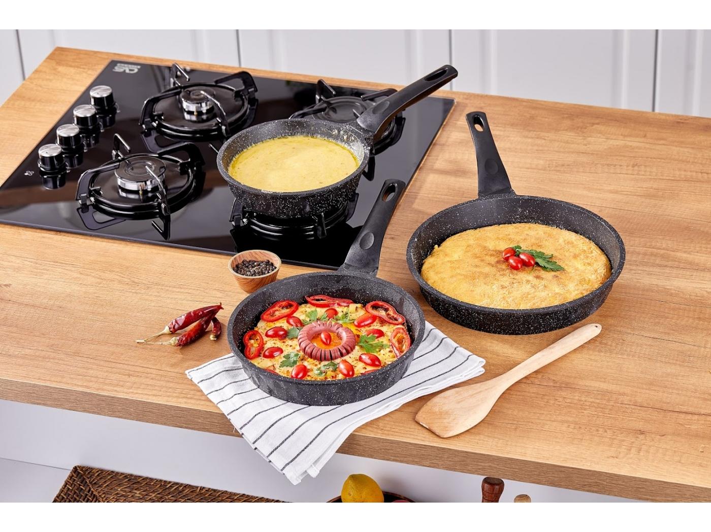 Taç Viva 3'lü Tava Set Siyah 20 - 24 - 28 Cm