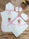 0-1 Yaş Bear Nakışlı Pareolu 4lü Kız Bebek Havlu Silgi Takımı Pembe
