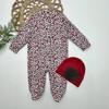 0-3-6-9 Ay Leopar Baskılı Tam Boy Çıtçıtlı Patikli Güllü Boneli Kız Bebek Tulumu Bordo
