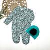 0-3-6-9 Ay Leopar Baskılı Tam Boy Çıtçıtlı Patikli Güllü Boneli Kız Bebek Tulumu Turkuaz