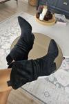 236-2194 Siyah Süet Streç Diz Üstü Fermuarlı Günlük Kadın Çizme - Image 1