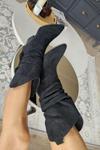 812-2194 Siyah Süet Fermuarlı Diz Üstü Bağcıklı Çorap Günlük Kadın Çizme - Image 1