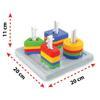Daire, kare, üçgen ve dikdörtgen şekilli geometrik parçalar mevcuttur. Oyuncak; parçaya göre uygun konumun bulunarak, çıkıntılı çubuklardan geçirilmesini ve tablaya oturtulmasını amaçlar.
