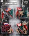 4’lü Set İçerisinde; 8 adet Kahverengi Asker, 8 adet Kırmızı Asker, 8 Adet Gri Asker ve 8 adet Yeşil Asker olmak üzere toplam 32 Asker figürü yer alır. Ayrıca 48 parçadan oluşan bu sete; 3 adet Savaş Gemisi, 1 adet Denizaltı, 4 adet Savaş Uçağı, 4 adet Bayrak ve 4 adet Bayrak Standı olmak üzere 16 aksesuar dahildir.