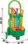 • Üründe 1 taşıma arabası, 1 kürek, 1 tırmık, 1 kazma, 1 el kazıyıcısı ve 1 adet bahçe sulama ibriği olmak üzere toplam 6 parçadan oluşur.