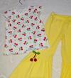 Beruflic 1-2-3-4 Yaş Kiraz Baskılı Tişört İspanyol Paçalı Likralı 2li Kız Çocuk Takımı Sarı