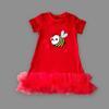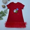 1-2-3 Yaş Arıcık Nakışlı Eteği Fırfırlı Jile Kız Çocuk Elbisesi Kırmızı