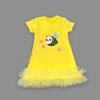 1-2-3 Yaş Arıcık Nakışlı Eteği Fırfırlı Jile Kız Çocuk Elbisesi Sarı