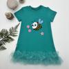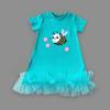 1-2-3 Yaş Arıcık Nakışlı Eteği Fırfırlı Jile Kız Çocuk Elbisesi Turkuaz