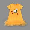 1-2-3 Yaş Arıcık Nakışlı Eteği Fırfırlı Jile Kız Çocuk Elbisesi Turuncu