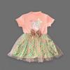 1-2-3 Yaş Denizkızı Baskılı Pul Desen Etekli Kız Bebek Elbisesi Pudra
