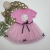 1-2-3 Yaş Payet Yapraklı Çiçek Nakışlı Astarlı Kız Bebek Tütü Elbisesi Pembe