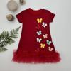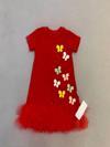 1-2-3 Yaş Renkli Kelebekler Nakışlı Eteği Fırfırlı Jile Çocuk Elbisesi Kırmızı