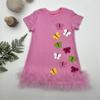 1-2-3 Yaş Renkli Kelebekler Nakışlı Eteği Fırfırlı Jile Çocuk Elbisesi Pembe