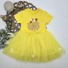 1-2-3 Yaş Tül Fiyonk Çiçekler Nakışlı Astarlı Kız Bebek Tütü Elbisesi Sarı
