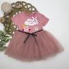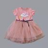 1-2-3 Yaş Tül Tokalı Bulut Civciv Ve Yıldız Nakışlı Kız Bebek Elbisesi Gül Kurusu