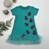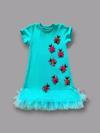 1-2-3 Yaş Uğur Böceği Nakışlı Fırfır Uçlu Kız Çocuk Jile Elbisesi Turkuaz