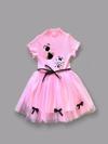 1-2-3 Yaş Uğur Böceği Nakışlı Kurdela Kuşak Kız Çocuk Elbisesi Pembe