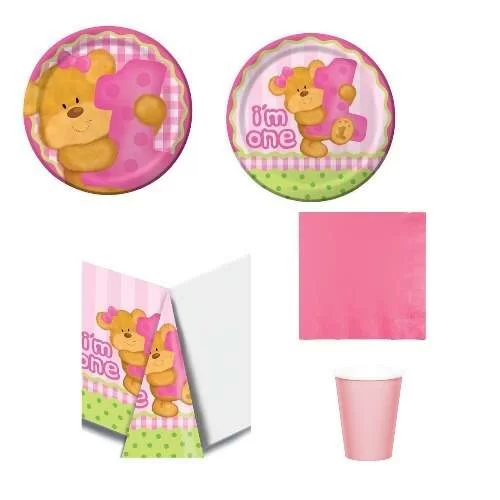 1 Yaş Pembe Ayıcık Parti Seti 8 Kişilik
