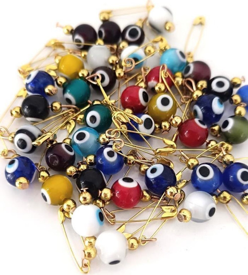 10 Adet 0.8 mm Maşallahlık İğneli Cam Karışık Renkli Nazar Boncuğu