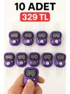🧿 Parmak Tipi Dijital Zikirmatik / Tally Counter (10 ADET Mor) ✅ Ürün Özellikleri: Sessiz ve hızlı tepki veren buton sistemi Parmak geçmeli esnek silikon kayış ile her parmağa uygundur Sayım yaparken titreşim veya ses çıkartmaz Tek tuşla sayım (COUNT) ve sıfırlama (RESET) Pil dahildir (uzun ömürlü) Dijital ekranlı sayım cihazı (zikirmatik / tally counter) 🎨 Renk Seçenekleri: Açık Mavi Turkuaz Açık Yeşil Mor Haki Beyaz Kırmızı Lila Pembe Koyu Yeşil Sarı Açık Turkuaz Mavi Turuncu Somon Kahverengi Siyah Pudra 🕋 Zikir sayacı olarak kullanılabileceği gibi, sayım gereken tüm aktiviteler için uygundur: misafir takibi, ürün sayımı, egzersiz tekrar sayacı, etkinlik sayımı vb..