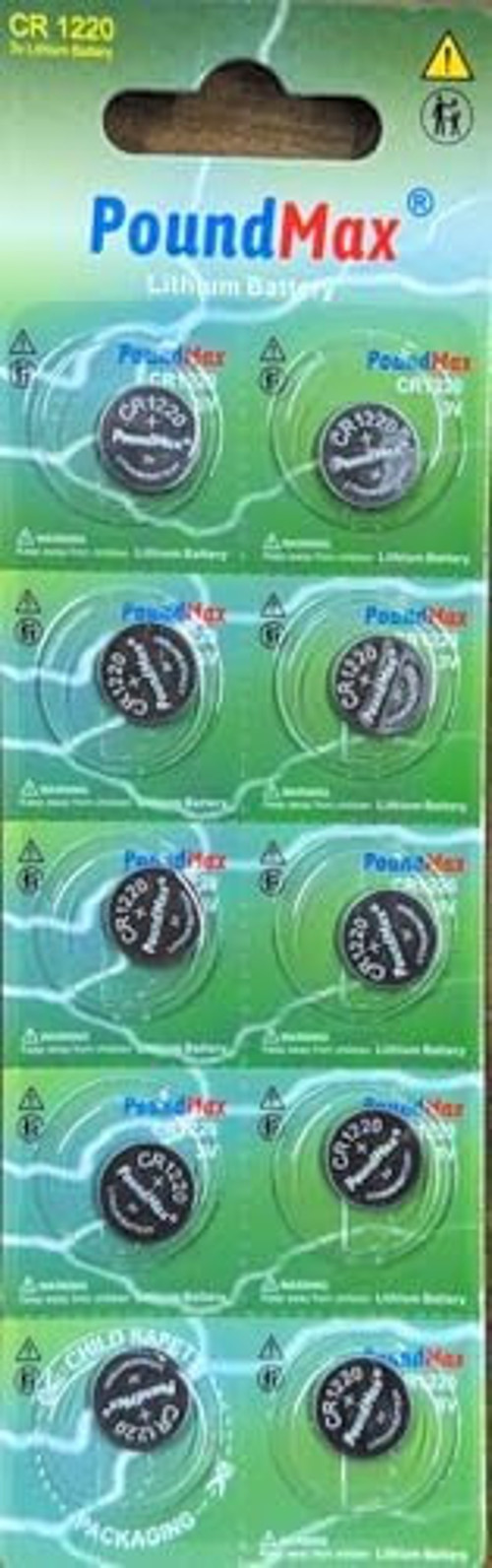 - Paket içerisinde 10 adet PoundMax CR1220 DL1220 3V lityum hücre saat pilleri bulunmaktadır. - Bu yüksek kaliteli pil seti, uzun ömürlü performans ve güvenilirlik sunar. - Her bir pil CR1220/DL11220 modeline uyumludur ve çeşitli cihazlarda kullanılabilir. - Saatler, hesap makineleri, elektronik oyuncaklar gibi geniş bir ürün yelpazesinde güç kaynağı olarak kullanılabilir