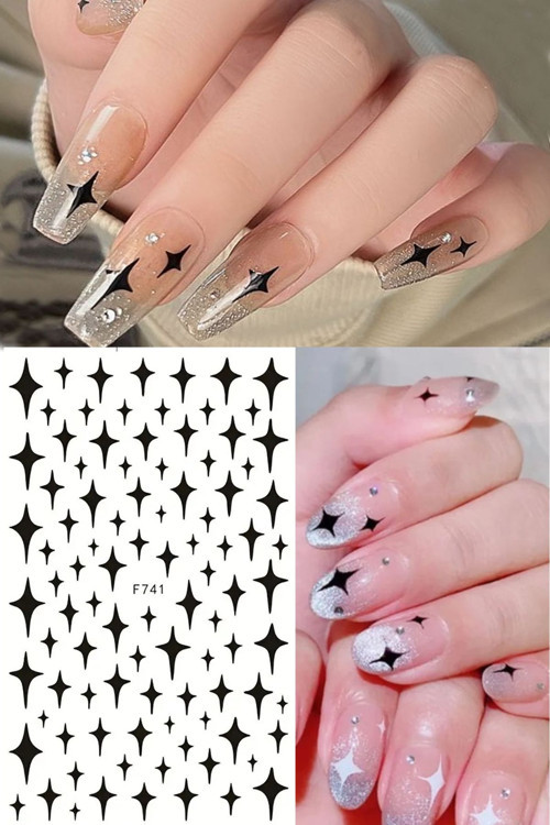 H&E Luxury Design 100 Adet Kendinden Yapışkanlı Kuyruklu Yıldız Nail Art 3D Kabartmalı Tırnak Sticker