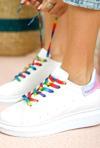 100 cm Gökkuşağı Renkli Yassı Ayakkabı Bağcığı, klasik ayakkabılarınızı anında canlı ve eğlenceli bir görünüme dönüştürür. Yumuşak dokusu ve dayanıklı yapısıyla uzun süre kullanılabilir. Beyaz spor ayakkabılar başta olmak üzere her tür modele uyum sağlar. Kadın, erkek ve çocuklar için tasarlanan bu bağcık, enerjik renkleriyle günlük kombininize özgün bir hava katar.