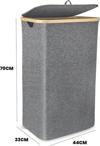 100 Lt Katlanır Kumaş Bambu Çamaşır Sepeti İçi Fileli Kirli Çamaşır Sepeti
