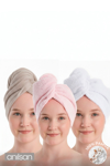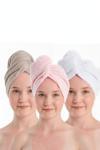 Anılsan %100 Pamuk Bej-Pudra-Beyaz Havlu Bone Saç Kurutma Bonesi Kafa Havlusu Duş Banyo Bonesi Islak Saç Kur