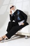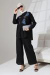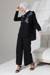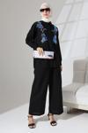 Moda 100% Pamuk Keten Günlük ve Rahat Çiçek Desen Nakışlı Pullu Gömlek Pantolon Yazlık Alt Üst Takım