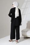 Moda Yüksek Bel Gömlek Yaka Günlük Yarım Gizli Patlı Omuz Detaylı Tunik-Pantolon Dokuma Takım - Image 1
