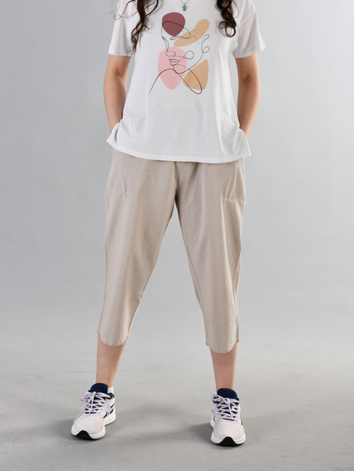 Duxa %100 Pamuk Keten Kumaştan Beli Lastikli ve Bağcıklı Kadın Rahat Kalıp Bol Kesim Günlük Ev Dış Spor Yazlık Baharlık Giyim Hambez Diz Altı Kapri Bermuda Şort Pantolon Eşofman Altı