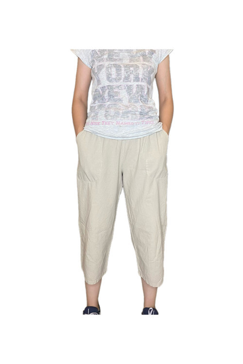 Duxa %100 Pamuk Keten Kumaştan Beli Lastikli ve Bağcıklı Kadın Rahat Kalıp Bol Kesim Günlük Ev Dış Spor Yazlık Baharlık Giyim Hambez Diz Altı Kapri Bermuda Şort Pantolon Eşofman Altı