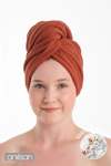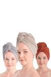 Anılsan %100 Pamuk Kiremit-Gri-Mavi Havlu Bone Saç Kurutma Bonesi Kafa Havlusu Duş Banyo Bonesi Islak Saç Kur