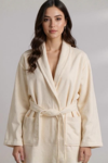 Evde veya otelde konfor ve zarafeti bir arada sunan Krem salyaka bornozumuzla tanışın, lüks bir rahatlık arayanlar için ideal olan bu bornoz, hem estetik hem de işlevselliği mükemmel bir şekilde sağlar.
