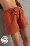 %100 Pamuk Müslin Kumaş Rahat Kesim Bağcıklı Lastikli Cepli Kadın Şort @Las Palmas