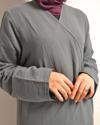 Gamze Zincir Detaylı Tesettür Elbise Gri - Image 1