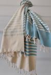 %100 pamuktan üretilen peştemal, 80x190 cm ölçüsüyle şezlong örtüsü ve plaj havlusu olarak ideal kullanım sunar.