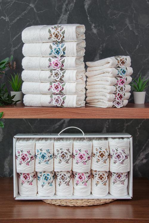 %100 Pamuklu 3D Çiçek İşlemeli 12’li Analı Kızlı Havlu Seti, yumuşak dokusu ve yüksek su emiciliği ile hem şıklığı hem konforu bir arada sunar.