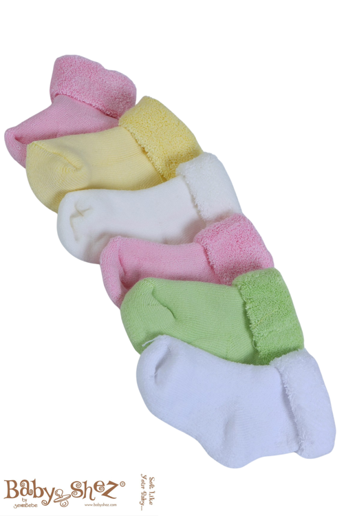 Baby Shez Organik Pamuklu 6'lı Yenidoğan Bebek Çorap