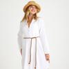 Güneş ışınlarının zararlı etkilerinden koruyan ve hızlı kuruyan pamuklu kumaşıyla pratik kullanım sağlar. Yazın sıcak günlerinde plaj ve havuz keyfinizi tamamlayacak olan %100 pamuklu dokuma müslin hakim yaka kemer detaylı plaj gömlek elbisesi, aynı zamanda günlük kullanıma da uygun bir parçadır.