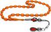 Gümüş Hediye Al 925 Ayar Gümüş Kral Püsküllü Nakkaş İmameli Lale Tasarım Sarı Ateş Kehribar Tesbih