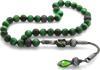 Tesbihane 1000 Ayar Gümüş Kazaz Püsküllü Küre Kesim Yeşil Kaplangözü Doğaltaş Tesbih