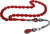 Tesbihane 1000 Ayar Gümüş Kazaz Püsküllü Uçlu Kapsül Kesim Bayrak Kırmızısı Ateş Kehribar Tesbih