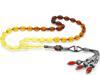 1000 Ayar Gümüş Tria Kazaz Püsküllü Arpa Kesim Kırmızı-Sarı Damla Kehribar Tesbih