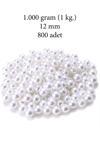 Mbb E-Ticaret 1.000 gram (1 kg.) 12mm Beyaz Renk Plastik İnci Boncuk Çanta ve Takı Yapım Boncuğu (~800 adet)
