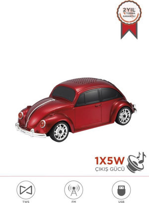 Torima D-Kırmızı Araba Voswos Retro Tasarım USB/TF/FM Bluetooth Hoparlör Speaker